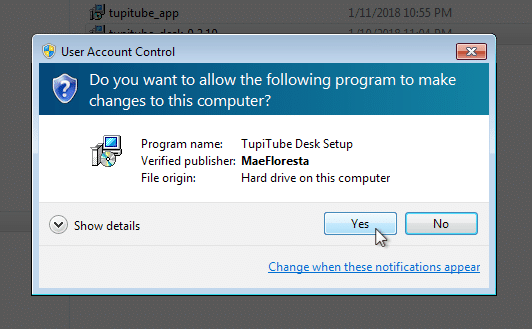 1. Haz doble clic en el instalador. Aparecerá una ventana con el ícono TupiTube Desk.